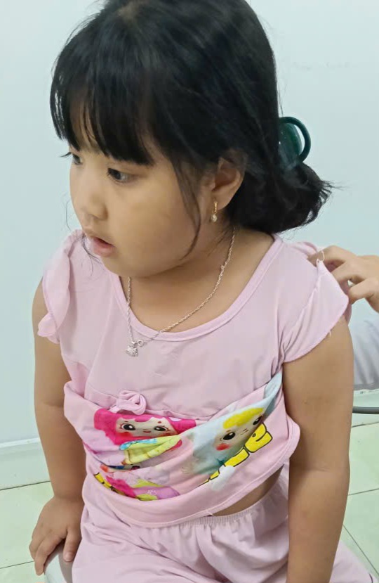 Bé Gia Hân khám ở Bệnh Viện tỉnh An Giang. bác sĩ cho biết bé bị nhiễm trùng đường hô hấp, viêm ruột không đi tiêu được.