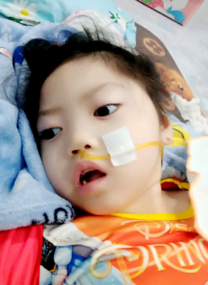 Bé Ngọc bẩm sinh bị bại não, gây ra động kinh co giật và bại liệt. Bé đang được điều trị tại khoa Thần Kinh, Bệnh Viện Nhi Đồng 2, Sàigòn. Bảo Hiểm Y Tế trả được 80% viện phí, nhưng các loại thuốc đặc trị ngoài danh mục bảo hiểm gia đình phải tự mua rất tốn kém.