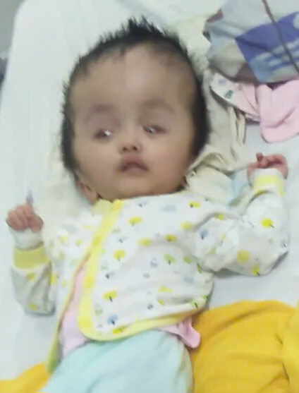 Bé An Nhiên bẩm sinh bị não úng thủy, động kinh bại não, hôi chứng Down, chậm phát triển, viêm ruột và đại tràng do nhiễm trùng, lại bị táo bón nặng. Bé có Bảo Hiểm Y Tế trả được 100%. Bé vào cấp cứu ở Bệnh Viện Thống Nhất, bác sĩ đề nghị chuyển lên Sàigòn mà gia đình không lo liệu nổi.