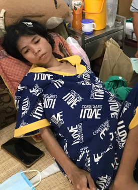 Chị Y Nương bị lao phổi nặng, bị dịch tràn vào phổi mỗi khi ăn, phải truyền từng túi dinh dưỡng thẳng vào bụng, mỗi túi 800.000 đồng, hiện chị đang nằm điều trị tại giường 15, phòng 5, khoa A6, bệnh viện Phạm Ngọc Thạch, Sàigòn. Gia đình hiện đã phải vay nợ lên đến 15 triệu đồng.