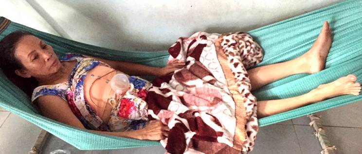 Bà Hồng Điệp bị ung thư vú, đã được mổ và đang hóa trị tại Bệnh Viện Ung Bướu Cần Thơ, Bảo Hiểm Y Tế thanh toán được phần hóa trị mỗi tháng hết 25 triệu đồng. Các khoản chi khác cho bệnh viện, gia đình phải vay mượn khắp nơi để lo liệu cho bà.