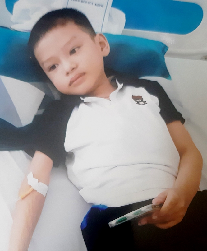 Đầu năm 2023, bé Khôi thấy đau bụng dữ dội, đưa đi cấp cứu ở Bệnh Viện Cuba, sau đó phải chuyển ngay vào Bệnh Viện Trung Ương Huế. Các bác sĩ xét nghiệm và cho biết bé bị căn bệnh ác tính u nguyên bào thần kinh, hiện đang nằm điều trị tại khoa Nhi – Truyền Máu – Huyết Học. Ông nội bé là Nguyễn Quốc Hoàn, 67 tuổi, theo vào Huế để chăm sóc cháu.