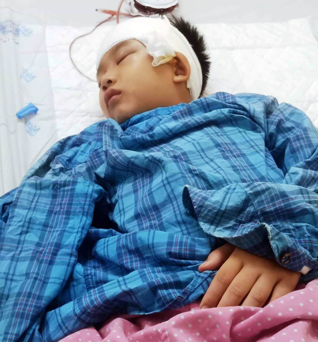 Tháng 10.2023, em Mạnh phát hiện khối u nhỏ nơi hốc mắt trái gây đau nhức, đi khám tại Bệnh Viện Nhi Thành phố Vinh Nghệ An, rồi chuyển ra Bệnh Viện K 3 Tân Triều, Hà Nội, bác sĩ cho biết em đã bị ung thư xương sọ, giải phẫu ngay và điều trị trong 27 ngày, chuyển qua Bệnh Viện Ung Bướu Nghệ An để hóa trị 6 mũi, sau đó sẽ còn phải xạ trị. Viện phí đến nay đã lên đến 38 triệu đồng sau khi trừ Bảo Hiểm Y Tế. Gia đình đã phải vay mượn khắp nơi để lo liệu cho em.