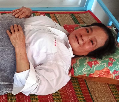 Bà Trinh bị chứng hở van tim trên 10 năm nay, không có tiền trị bệnh, chỉ uống thuốc cầm cự, thường xuyên bị mệt xỉu, gần đây lại rất đau nhức vì có khối u ở xương hàm, chuyển thành ung thư, đã phải giải phẫu, sau đó hóa trị và truyền nước biển hằng tuần tại Bệnh Viện Đa Khoa Vĩnh Long. Chi phí hết 60 triệu đồng, Bảo Hiểm Y Tế trả được 50%, còn lại gia đình đã phải vay nợ khắp nơi để lo liệu.