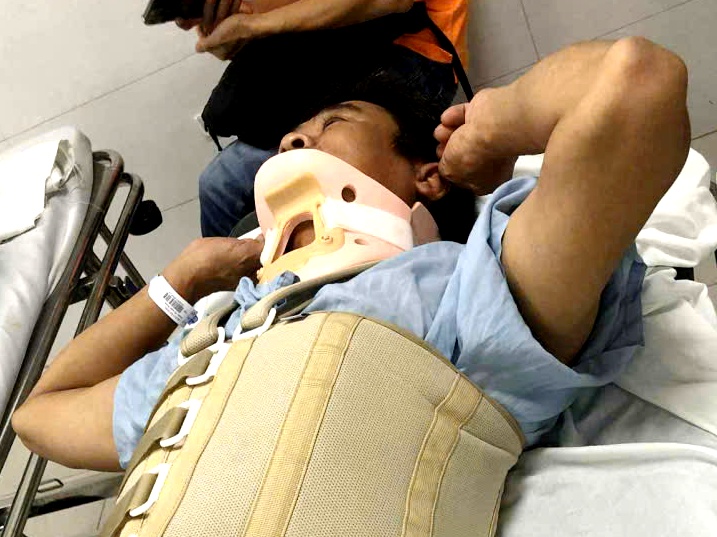 Ngày 19.8.2025, trong khi lao động ở Vientiane, Lào, không may ông bị trượt chân ngã từ giàn giáo cao 5m xuống đất. Ông được anh em cùng làm chung đưa ngay về Việt Nam, vào cấp cứu tại Bệnh Viện Hà Tĩnh. Ngày 22 tháng 8, ông được chuyển lên Bệnh Viện Việt Đức, Hà Nội, các bác sĩ cho biết ông bị gãy cột sống thắt lưng và chậu hông, giập gan, chờ lịch mổ. Chi phí mổ được báo là hơn 60 triệu đồng, chưa tính các khoản chi khác kèm theo. Bảo Hiểm Y Tế chỉ trả được 32%, gia đình cố gắng gom góp chỉ được 30 triệu đồng