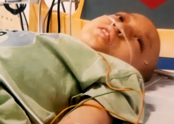 Bé Mỹ bị ung thư thận giai đoạn 4, đưa từ Lào về Việt Nam, để vào điều trị tại khoa Nhi Ung Bướu-Huyết Học-Ghép Tủy của Bệnh Viện Trung Ương Huế tháng 11 năm 2014. Bé đã được mổ cắt bỏ một bên thận và qua nhiều đợt hóa trị. Bé không có Bảo Hiểm Y Tế nên mọi chi phí gia đình phải vay mượn rất vất vả đến kiệt quệ.