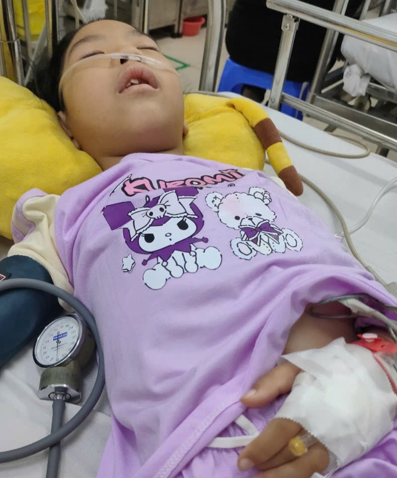 Bé Vy bẩm sinh đã bị chứng teo não, động kinh cực biến gen, liệt nửa người phải thường xuyên vào Bệnh Viện Hữu Nghị Việt Nam-Cuba, Đồng Hới, để truyền máu và điều trị thải sắt. Bé có Bảo Hiểm Y Tế được trả 80% nhưng bé bị kháng thuốc nên phải mua nhiều loại thuốc ngoài danh mục hết gần 5 triệu đồng, tiền thuê nhà cả điện nước hết 3,5 triệu đồng. Gia đình chưa tiếp tục lo được tiền nên bé phải tạm xuất viện về lại nhà trọ. Gia đình bé hiện đã rơi vào tình trạng suy kiệt, bế tắc.